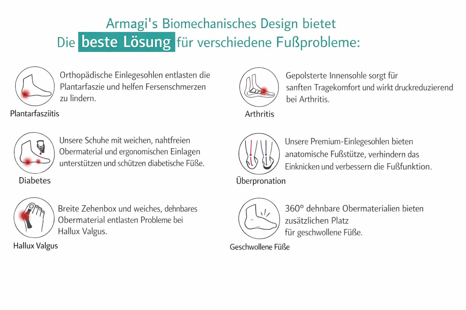 Plantarfasziitis? Fußschmerzen? Knieschmerzen? Plattfüße? Orthopädische Schuhe bieten die optimale Lösung. Hochwertige orthopädische Einlegesohlen mit verstellbarer Fußgewölbestütze und mehreren Polsterschichten bieten weichen, kissenartigen Halt und sorgen so für mehr Komfort und Linderung von Schmerzen in Fuß und Ferse bis hin zu Knien, Hüften und unterem Rücken.