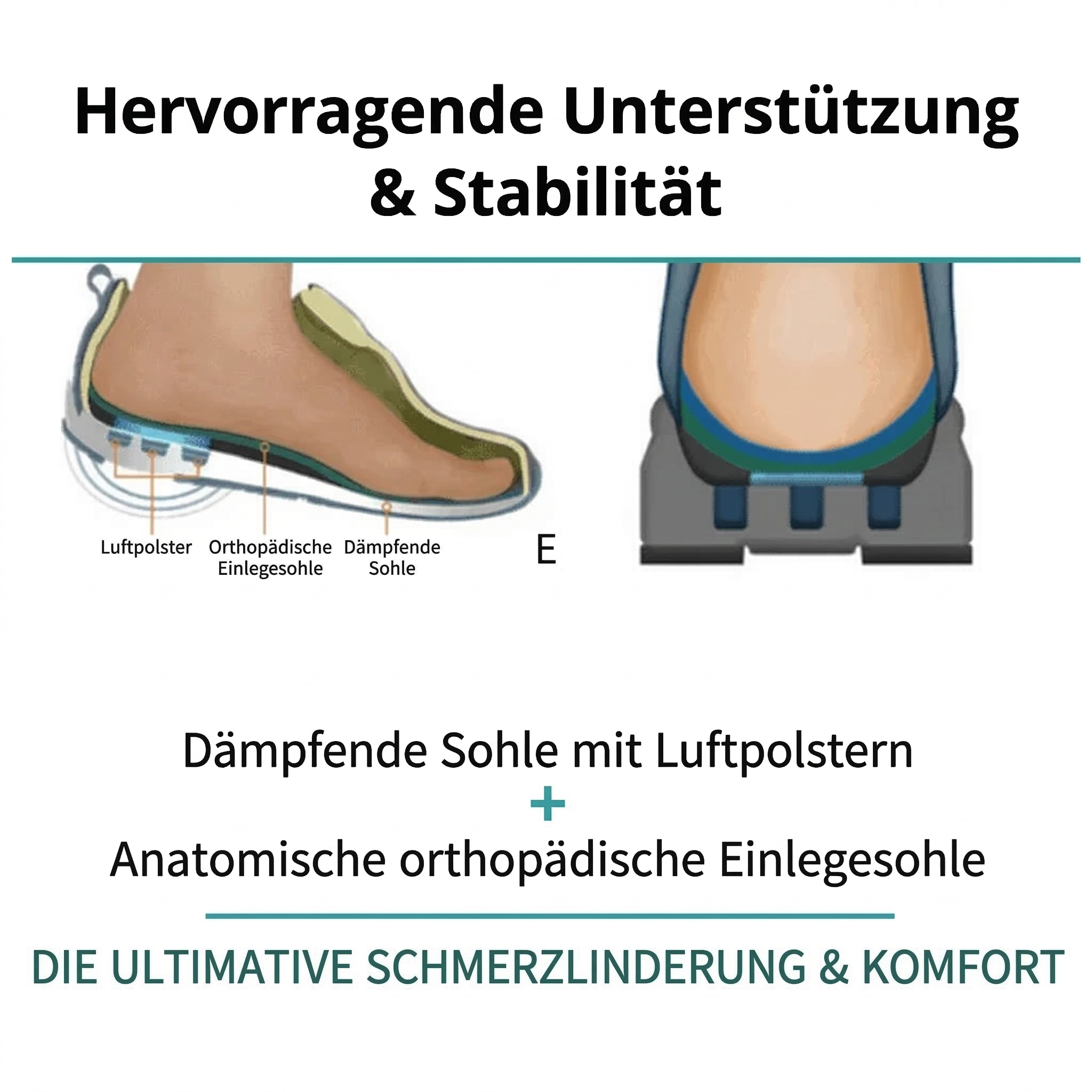 Das orthopädische Design mit verstärkter Fußgewölbeunterstützung trägt dazu bei, die Ermüdung der Füße zu reduzieren, die Körperhaltung zu verbessern und Gelenkschmerzen zu lindern – für dauerhaften Komfort.