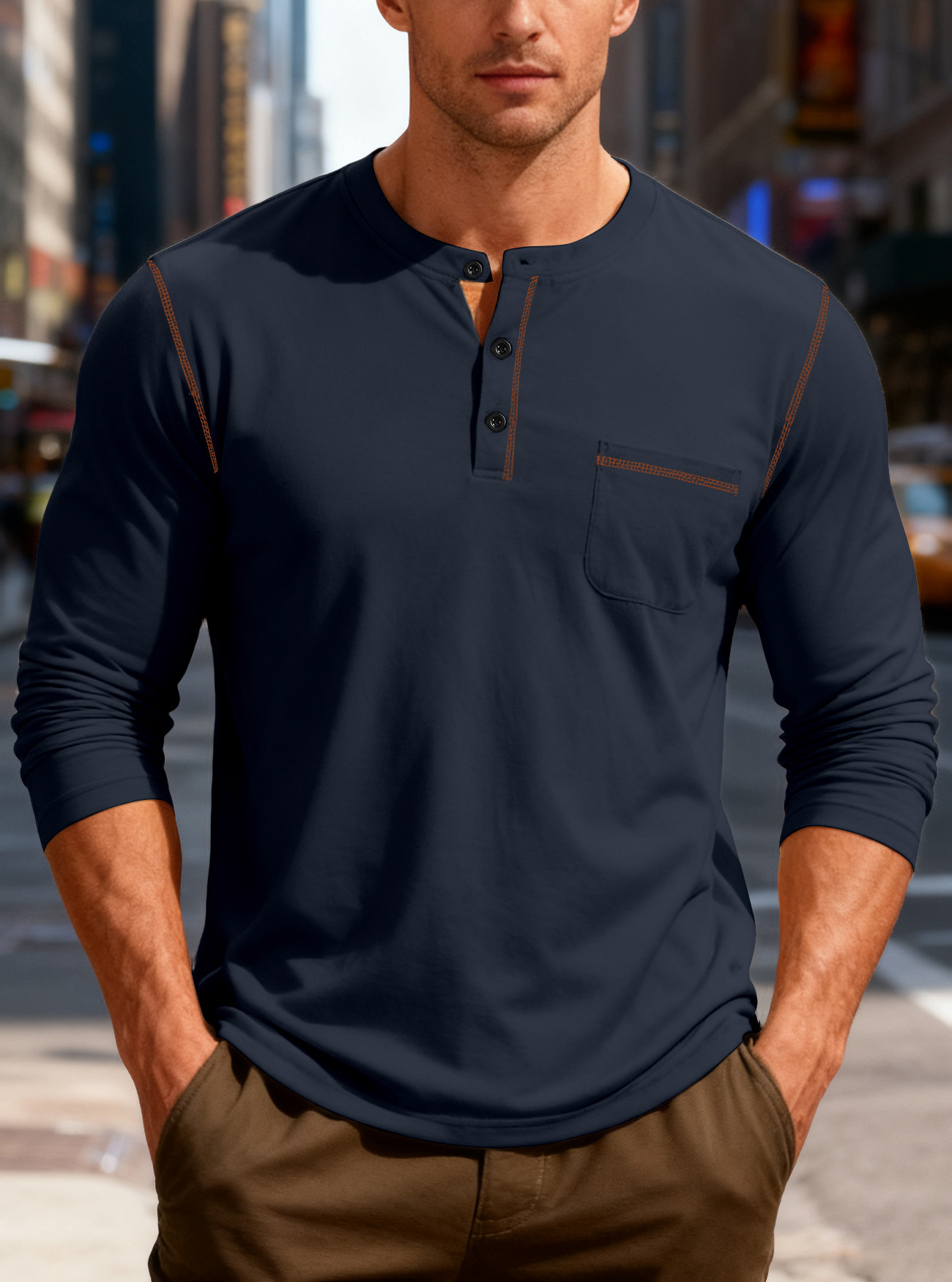 Die markanten Kontrastnähte verleihen diesem Klassiker einen maskulinen Touch, während die hochwertige Baumwolle für maximale Langlebigkeit sorgt.